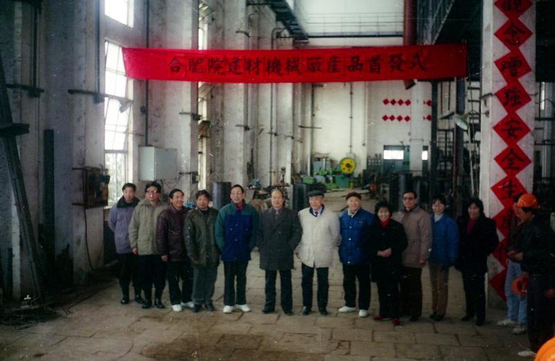 1994年7月,合肥院《科技實業(yè)發(fā)展規(guī)劃》出臺,明確了以科技成果為基礎,以工程設計為依托,以支柱產(chǎn)業(yè)為骨干,帶動全院其他科技產(chǎn)業(yè)產(chǎn)品的生產(chǎn)。開展工程承包、設備成套和建材產(chǎn)品貿(mào)易,形成內(nèi)地與沿海配套的經(jīng)營貿(mào)易網(wǎng)絡,組建科技實業(yè)集團,使其逐步成為院經(jīng)濟支柱的指導思想和奮斗目標。圖為九十年代合肥院建材機械廠產(chǎn)品首發(fā)式